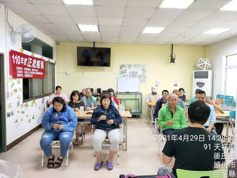 • 照片說明文字正念課程 學員透過呼吸體驗吹風車的節奏 減輕壓力的感受